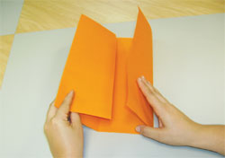 2. Abra-o e dobre suas laterais para dentro, na marca feita anteriormente, como se fossem duas portas.